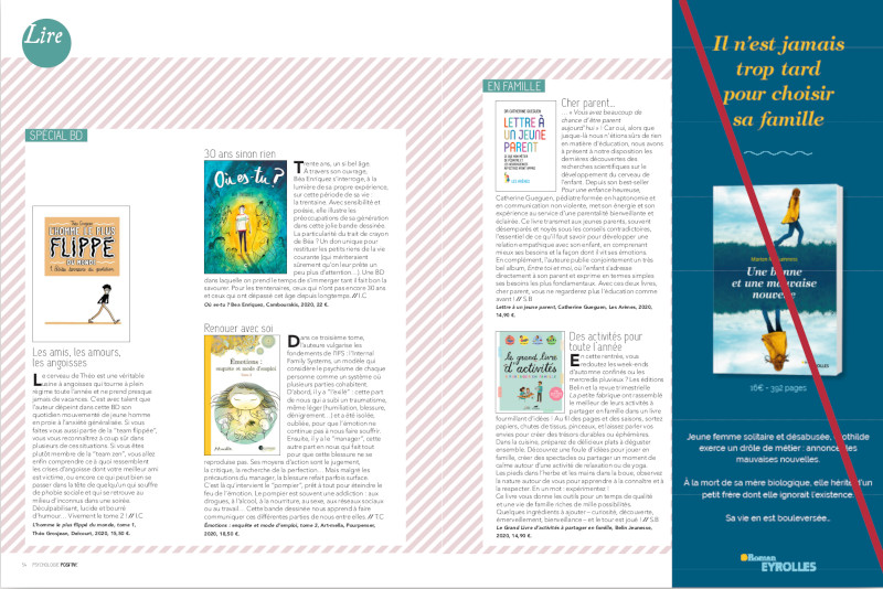 Dans les propositions de lecture du magazine psychologie positive du mois de septembre, octobre 2020 nous trouvons le troisième tome de la BD émotions, enquête et mode d’emploi d’Armella.