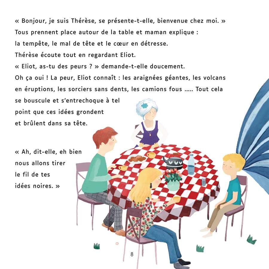 Mais un jour, Eliot et ses parents vont rendre visite à Thérèse.Eliot va alors decouvrir comment transformer ses idées noires en pensées lumineuses.